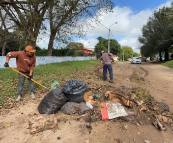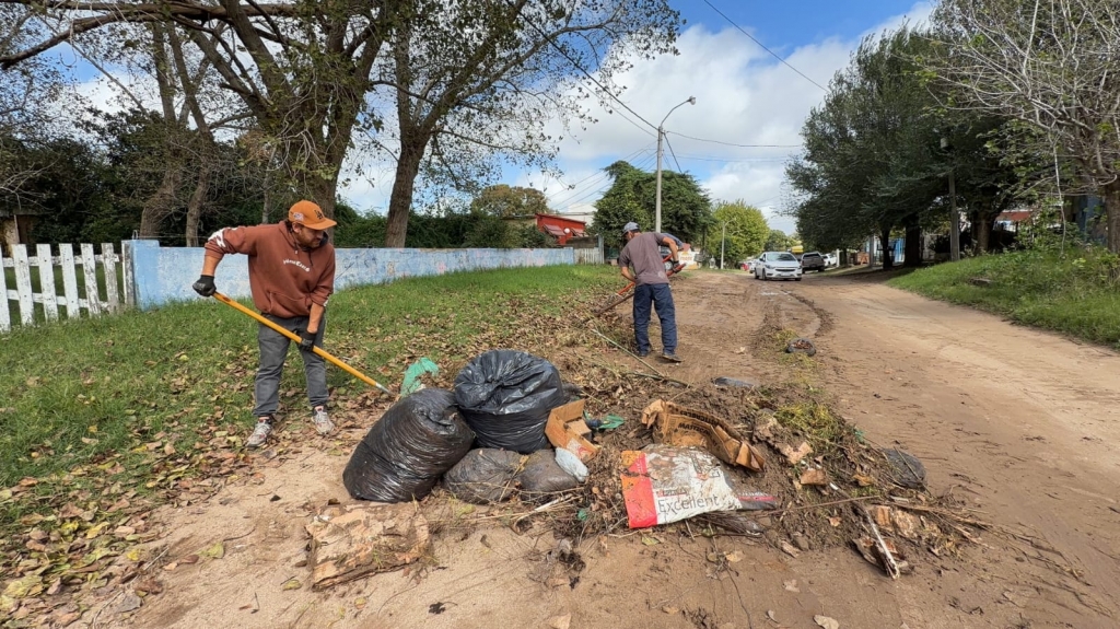 Los trabajos incluyen el retiro de residuos orgánicos y no orgánicos y se llevan adelante con el apoyo de maquinaria pesada y cuadrillas municipales que reacondicionan los espacios públicos.