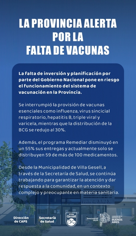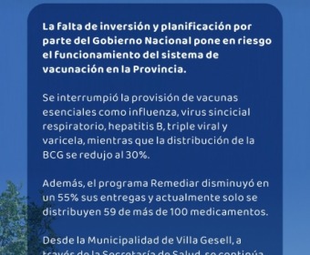 Dicho recorte ha significado la reducción de provisión de vacunas tales como Hepatitis B, Triple Viral, Virus Sincicial Respiratorio, Influenza y Varicela, entre otras, alcanzando también a la BCG que se ha reducido a un 30 %.