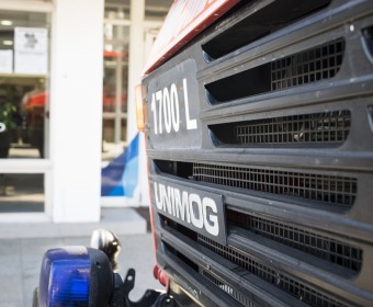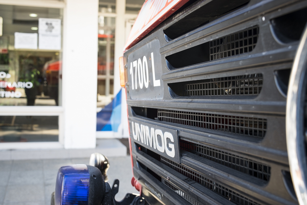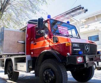 En el lugar, Luna le demostró las prestaciones del nuevo Unimog que cuenta con un tanque de con 2000 litros de capacidad, es diesel y tiene tracción 4x4.Entre otros componentes, cuenta con dos devanaderas de ataque rápido, escalera, colchón de salto para edificios de altura, alarma y equipos autónomos.